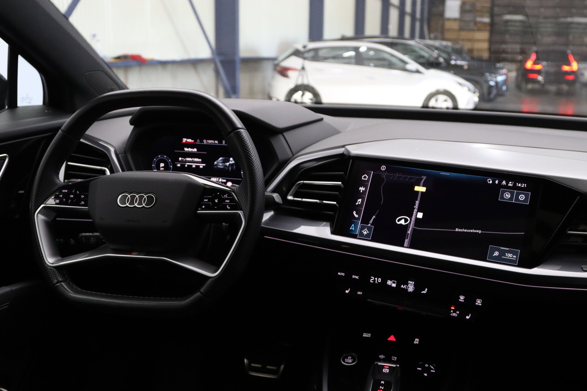 Kijk voor een uitgebreide fotoreportage op onze site. Dit betreft een zeer nette en goed uitgeruste Audi Q4 Sportback met talrrijke mooie opties zoals: panoramadak, Sonos geluidssysteem, lederen-alcantara bekleding, etc. Alle historie is aanwezig. 39.950,- euro betreft een scherpe, rijklare basisprijs. De prijs inclusief nieuwe APK, onderhoudsbeurt indien nodig en twaalf maanden BOVAG garantie komt uit op 41.200,- euro. Inruil is geen enkel probleem. Heeft u interesse en wilt u ons bezoeken? Om ervoor te zorgen dat we voldoende tijd voor u hebben, vragen we u om een afspraak te maken voordat u langskomt. Dit helpt ons om u zo goed mogelijk van dienst te zijn. De koffie staat klaar. Voor door ons geïmporteerde occasions met een hoogvolt-accu wordt een wettelijk verplichte verwijderingsbijdrage in rekening gebracht: €15 (mild-hybride), €60 (plug-in hybride) en €75 (volledig elektrisch). De Audi wordt standaard geleverd op de originele 19 inch lichtmetalen velgen, indien u ervoor kiest de auto te kopen met de getoonde 21 inch lichtmetalen velgen en banden kost dit 1.950,- euro extra. **Wij doen ons uiterste best om de informatie van onze advertenties zo correct en actueel mogelijk weer te geven. Aan bovenstaande informatie kunnen echter geen rechten worden ontleend. Controleer daarom samen met ons de aanwezige opties en accessoires op de auto van uw keuze.**